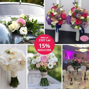 Flori : hortensie , trandafiri , minirose , lisianthus , frezii , bujori , eucalipt , asparagus , astilbe .