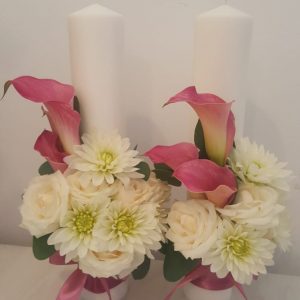 Lumanari Cununie LC8-40cm contine:trandafiri, lisianthus, frezii, lumanare 40 cm.