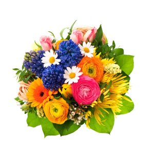 225,00 leiBuchetul contine zambile, ranunculus, gerbera, lalele, wax flower, verdeata