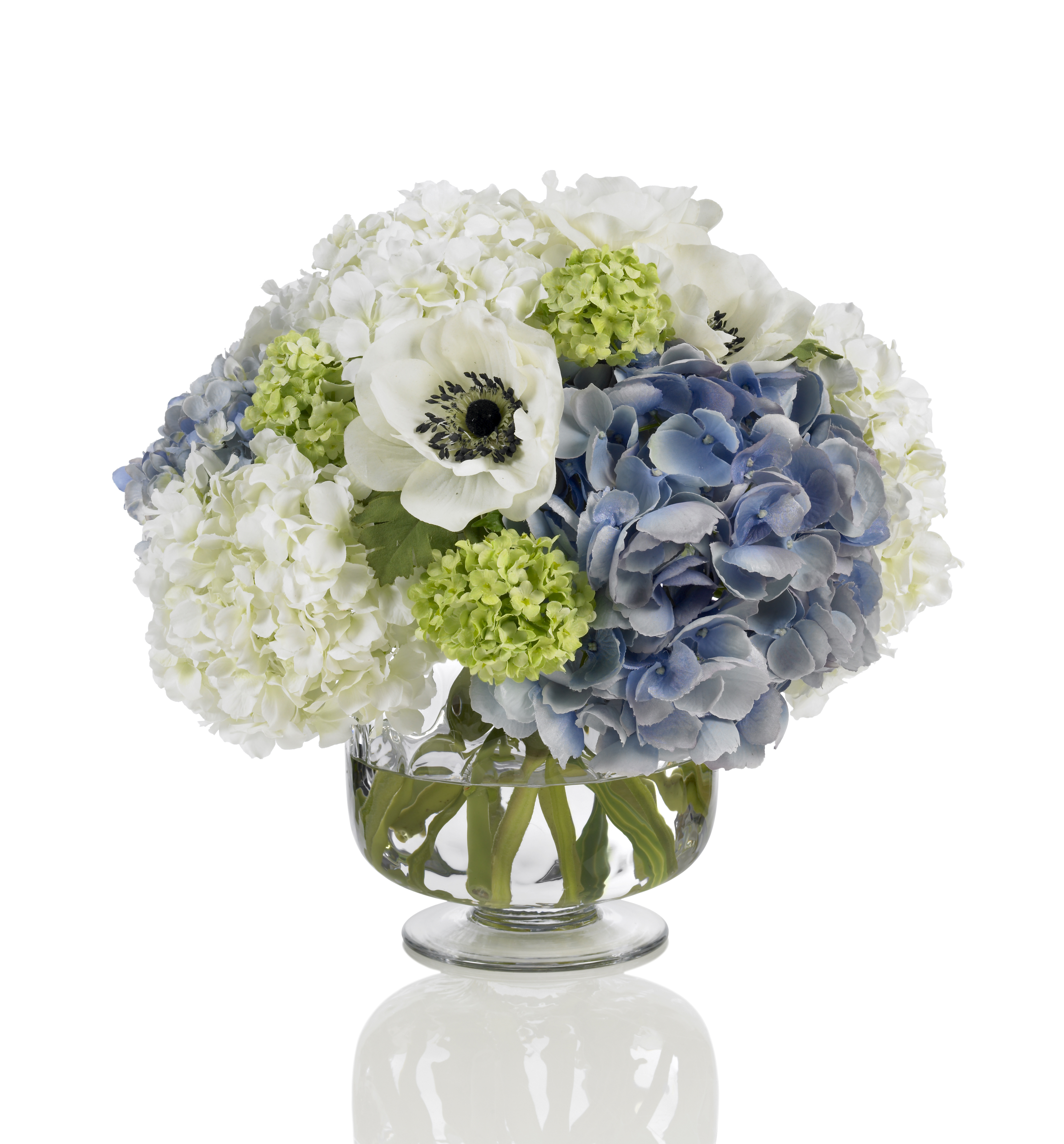 Buchetul este compus din hortensie , anemone , viburnum ,